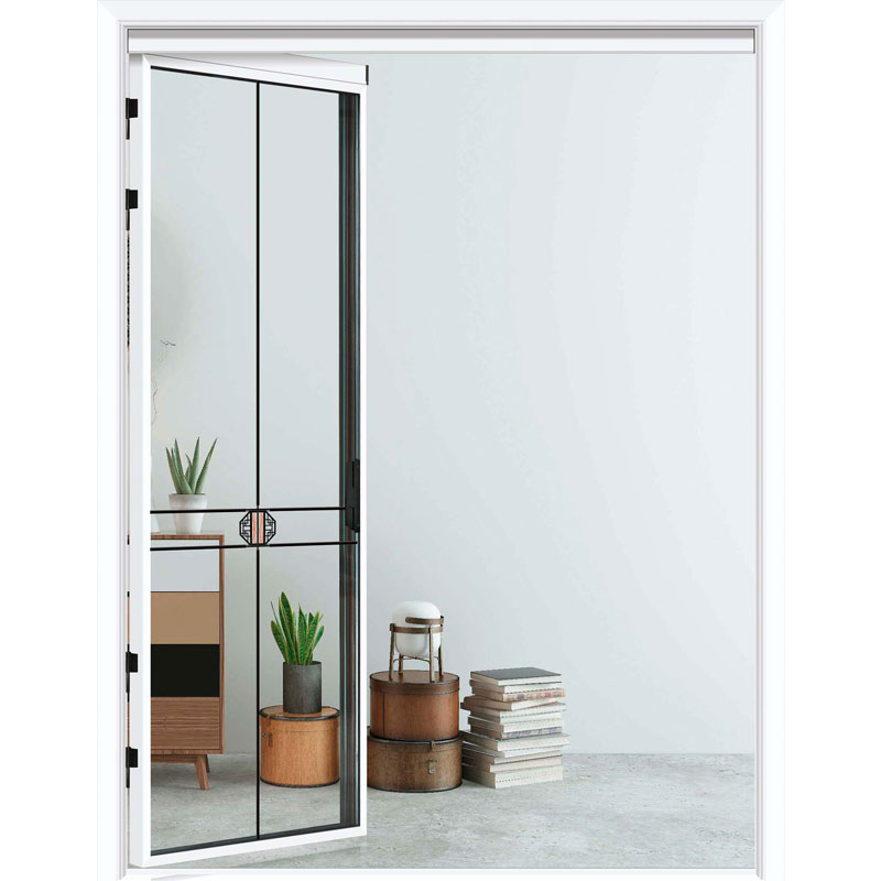Is féidir doras gloine Jingxing PD a bhrú agus a tharraingt, a fhilleadh isteach i duilleog amháin, agus ansin a oscailt cothrom i gcoinne an bhalla. Is féidir leis an doras isteach seo feabhas a chur ar úsáid spáis in árasáin bheaga.